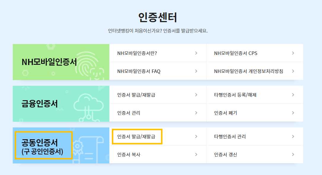 공동인증서 발급방법 농협 국민은행 사업자 개인