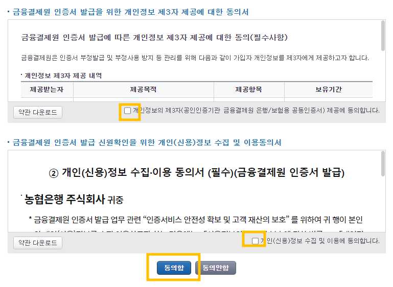 3) 약관 내용을 확인해주고 동의를 모두 체크한 후에 동의함을 눌러줍니다.