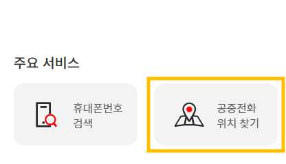 - 해당 홈페이지 메인화면에서 주요서비스 탭에 '공중전화 위치 찾기'를 들어갑니다.