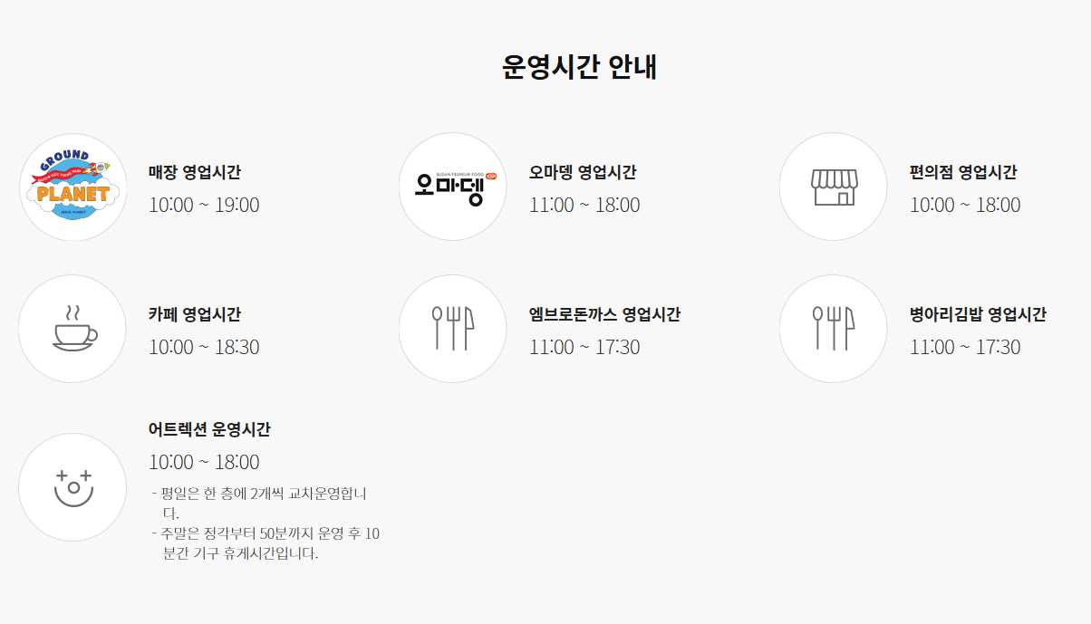→ 외부 음식물은 반입이 불가하며, 내부 식당과 간식 코너를 이용해 주세요.