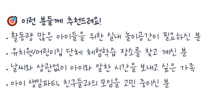 - 가성비 좋은 실내 키즈파크로 평점 높음.