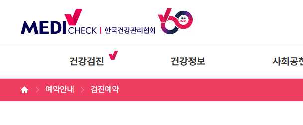 위와 같은 방법이 번거로우시다면 한국건강관리협회(메디체크)를 통해서 한번에 예약을 하는 방법이 있으니 아래를 참고해주시기 바랍니다. 메디체크를 통하여 예약을 할 경우 내가 원하는 병원에서 예약이 안될 수도 있으니 잘 확인하시기 바랍니다.