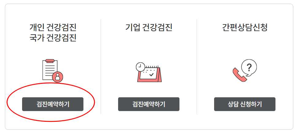 3.개인 건강검진, 국가 건강검진에 '검진예약하기'를 클릭합니다.