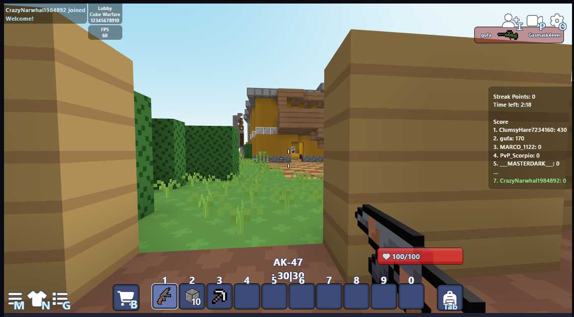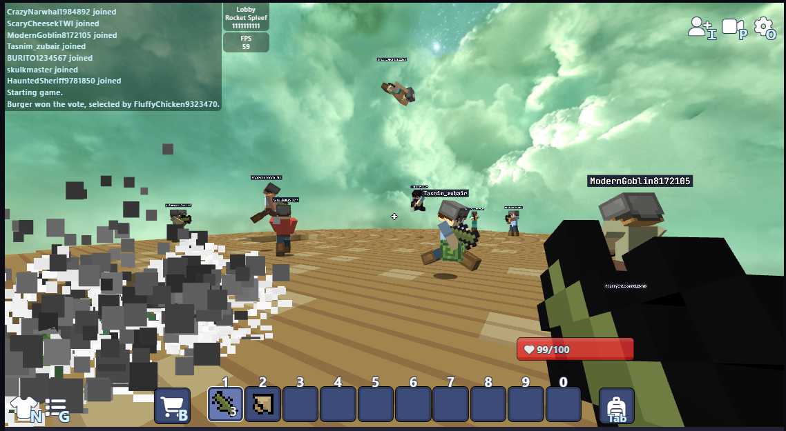 그 중에서 개인적으로 몰입해서 가장 재밌게 한 게임이 Bloxd.io 인데요, 여러명이서 서바이벌을 하는데, 먼저 상대 근처의 블록을 파괴해서 추락시키면 이기는 게임입니다.