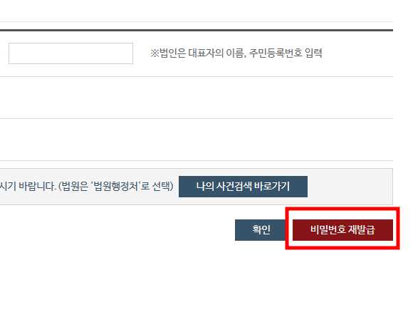 2) 비밀번호를 모를때에는 비밀번호 재발급을 통해서 사건번호를 조회할 수 있습니다.