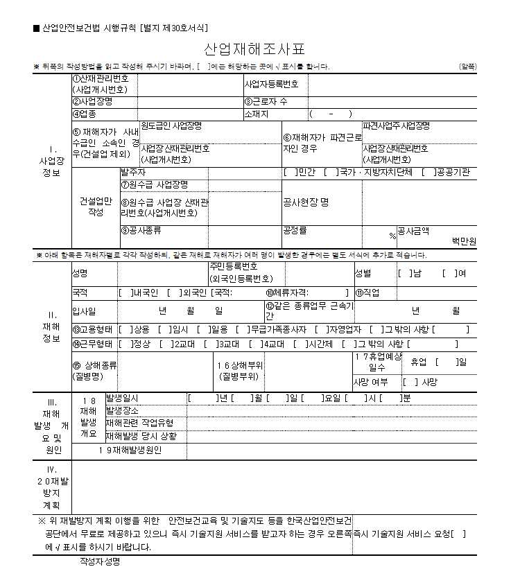산업재해조사표 양식