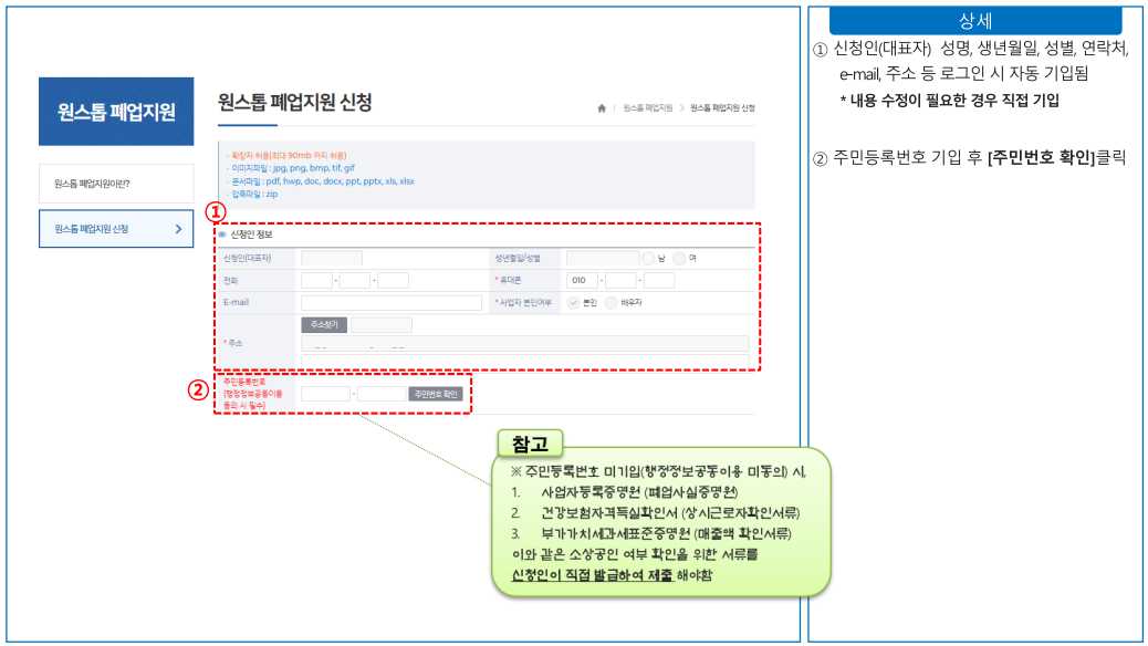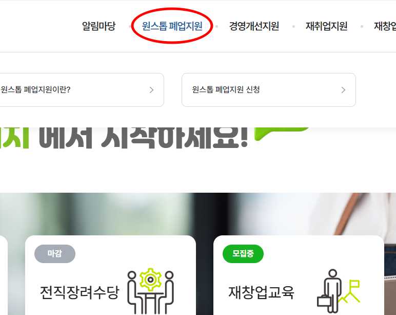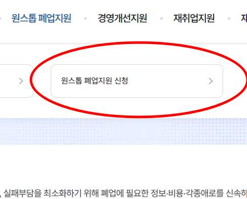 3. 원스톱 폐업지원 신청 페이지로 들어갑니다.