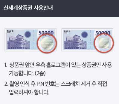 상품권에 홀로그램이 있어야하고 핀번호는 스크래치를 제거해야 확인할 수 있습니다.