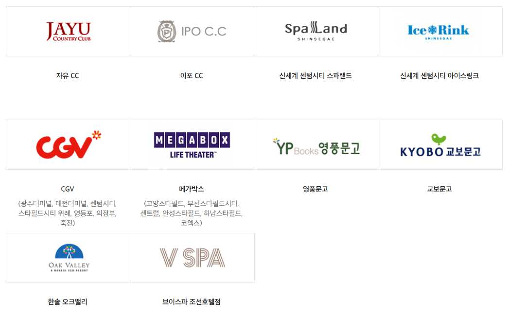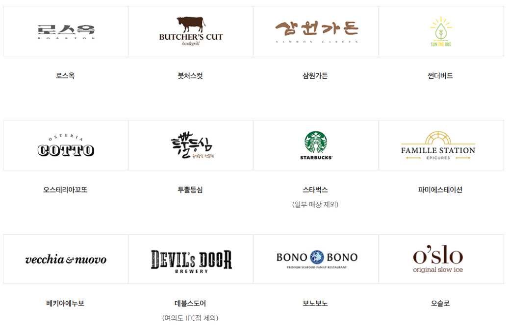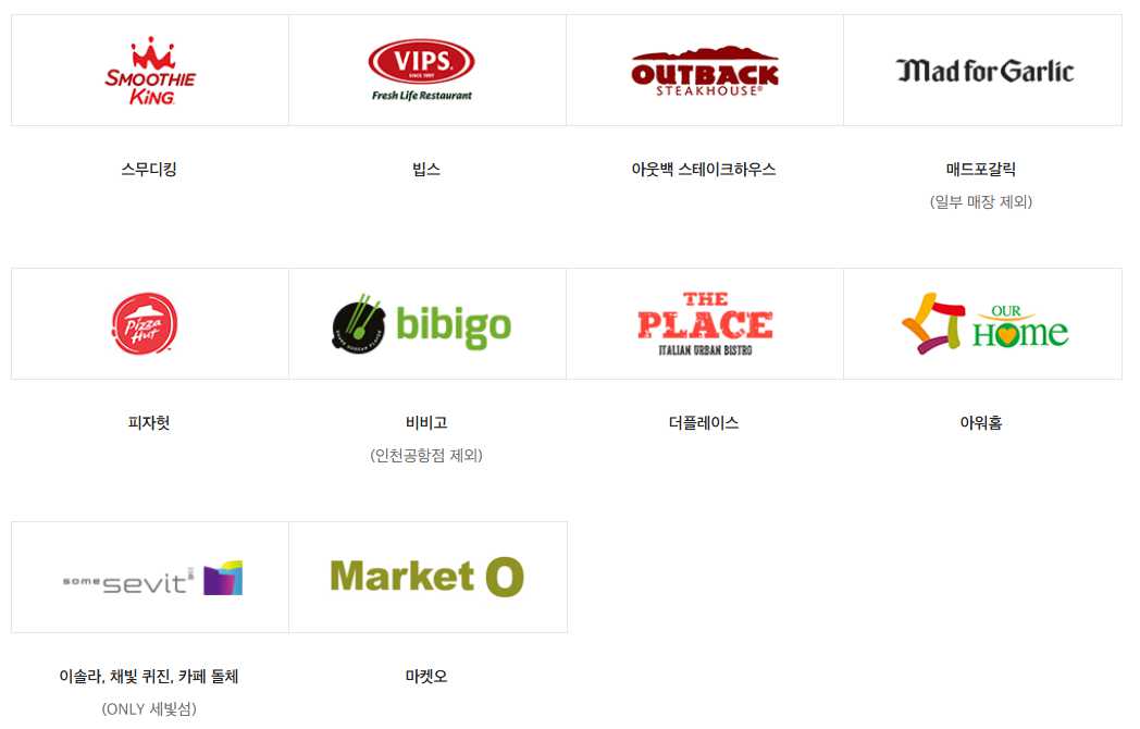 - 매드포갈릭, 아웃백, 빕스, 피자헛, 비비고 등