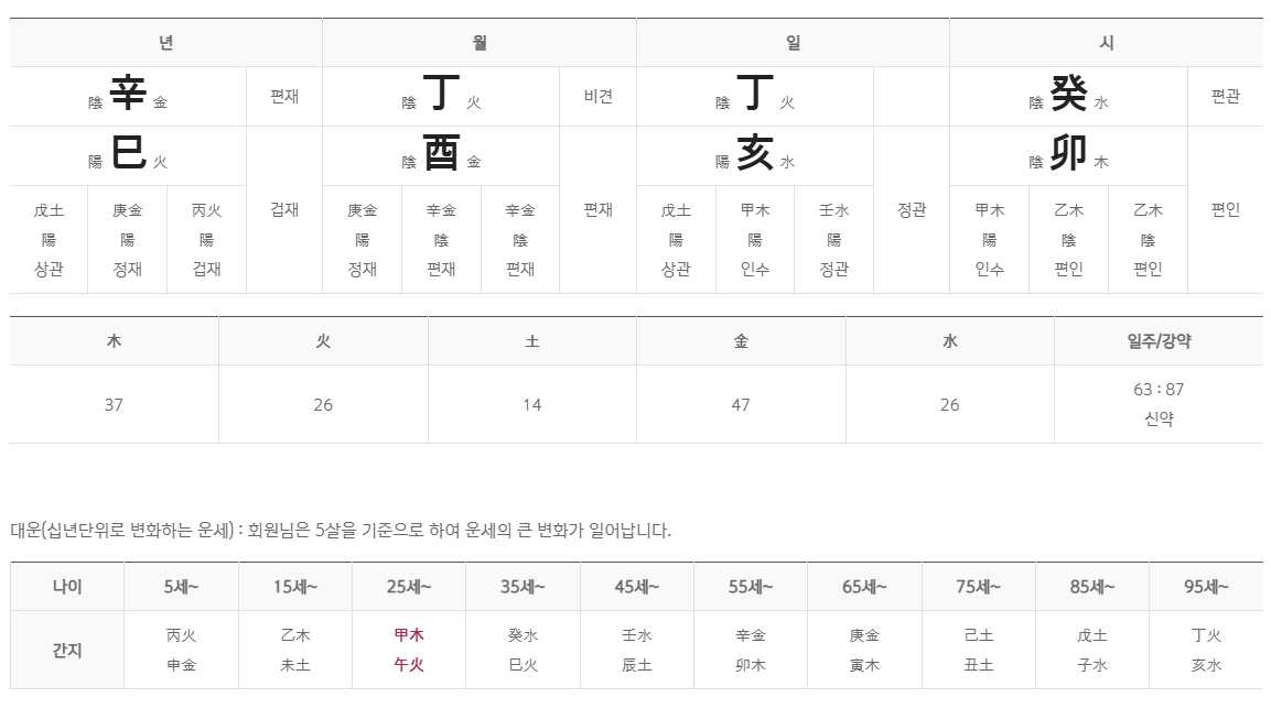 그러면 일반적인 초년, 중년, 말년 운과 형제,자식,부부의 운세 그리고 직업운까지 확인할 수가 있습니다.