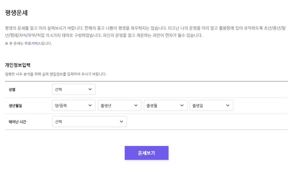 생년월일시와 성별만 입력해서 운세보기를 하시면 됩니다.
