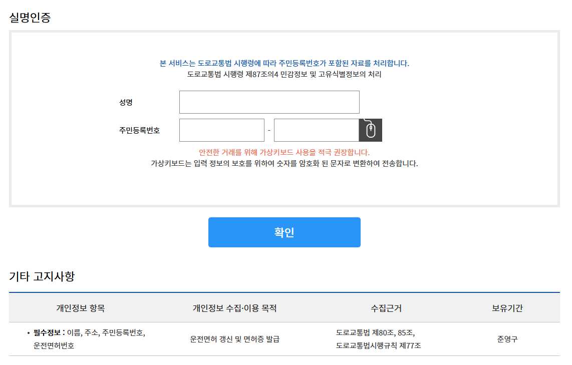 갱신 방법은 안전운전 통합민원의 갱신 신청페이지에서 실명인증을 통해서 진행하시면 됩니다.