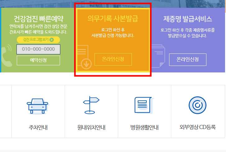 의무기록 사본 온라인 발급은 병원마다 약간씩 조건이 다르기 때문에 잘 확인하시는게 좋으며, 온라인 발급 서비스로 들어가서 발급을 받으시면 됩니다.
