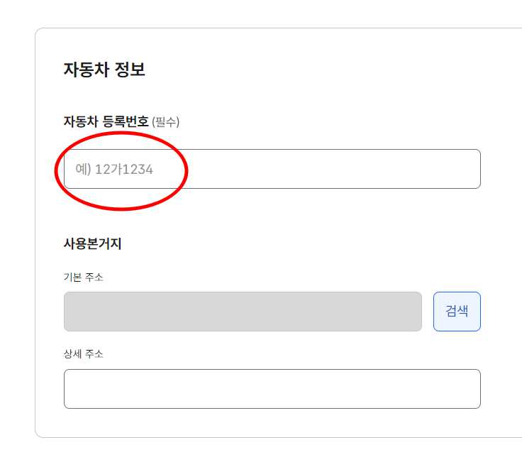 2) 주소 및 자동차 등록번호를 입력하면 되는데, 자동차등록번호란에는 차 번호판을 입력하시면 됩니다.