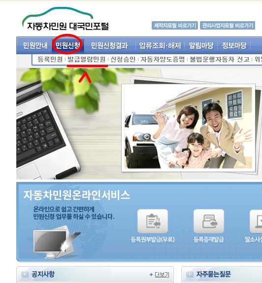 1) 자동차민원 대국민포털 사이트에 들어갑니다.