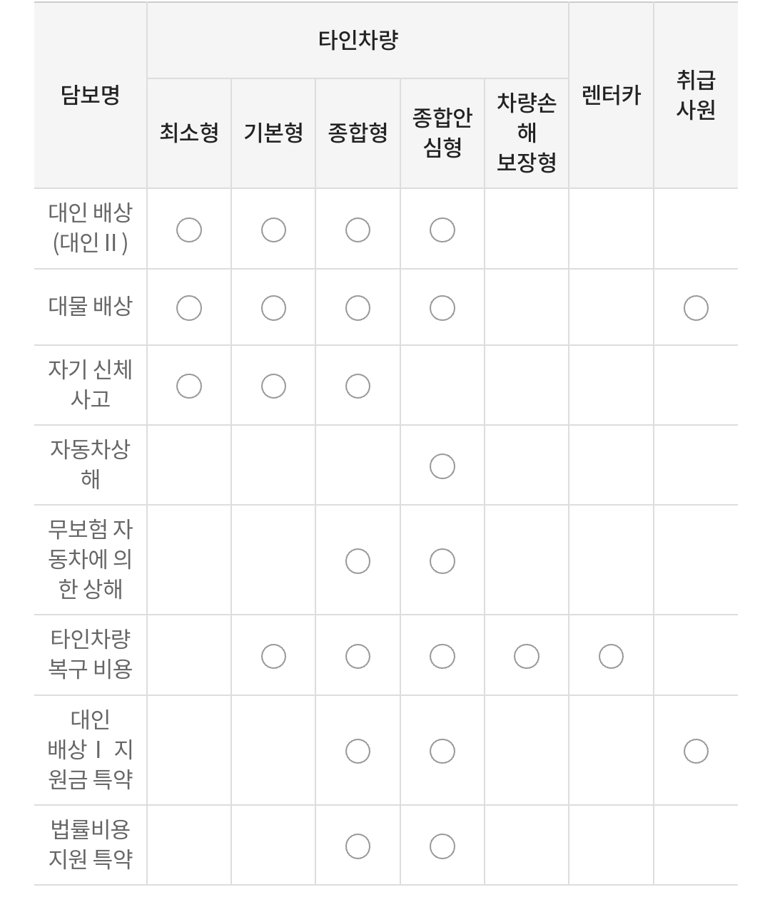 각 보험사마다 보장 내용과 보험료에 차이가 있으므로, 운전 목적과 상황에 맞는 상품을 비교하고 선택을 하시면 됩니다.