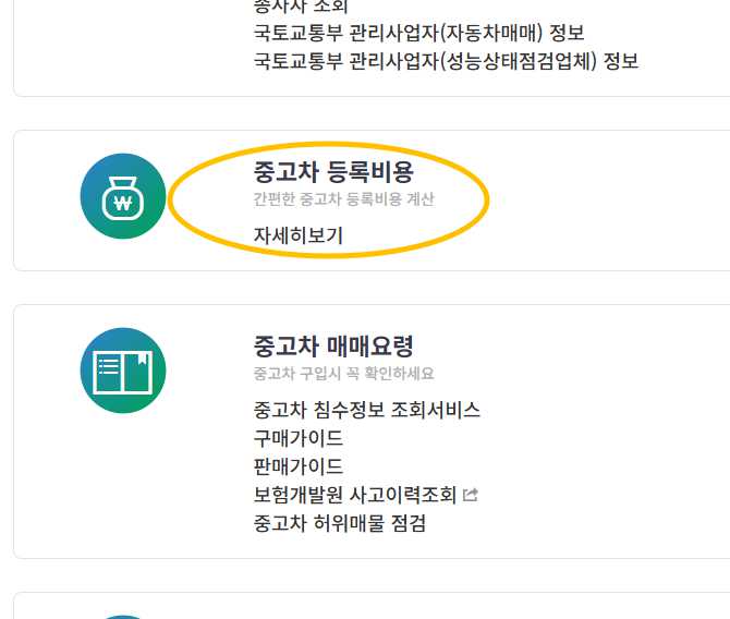 2) 스크롤을 내리면 중고차 등록비용 탭에 자세히보기를 누릅니다.