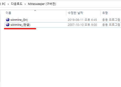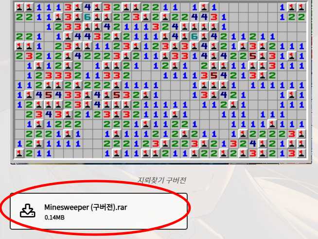 1) 클래식 버전을 원하시는 분들은 지뢰찾기 그림 밑에 구버전을 눌러서 다운로드 받으시면 됩니다. 신버전은 한칸 아래에 있습니다.