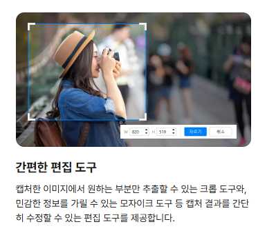 편집 기능이 상당히 직관적이어서, 추가적인 도구가 없이도 캡처된 이미지에 필요한 편집 작업을 쉽게 해서 저장을 할 수 있습니다.