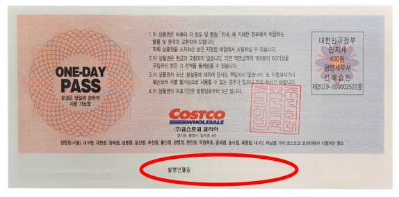코스트코 상품권 유효기간은 상품권 뒷면 가장 아래에 발행년월일이라고 적혀있는 부분을 보면 알 수 있습니다. 발행일로부터 5년간 유효합니다.