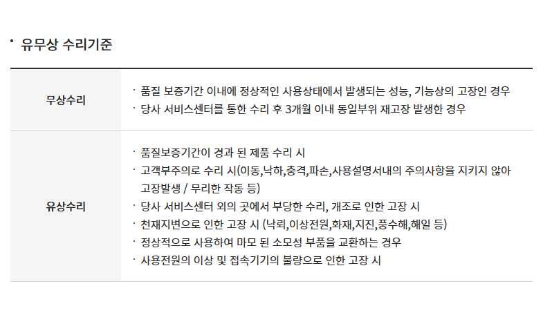 - 고객 과실로 인한 고장 (예: 충격, 물리적 파손)