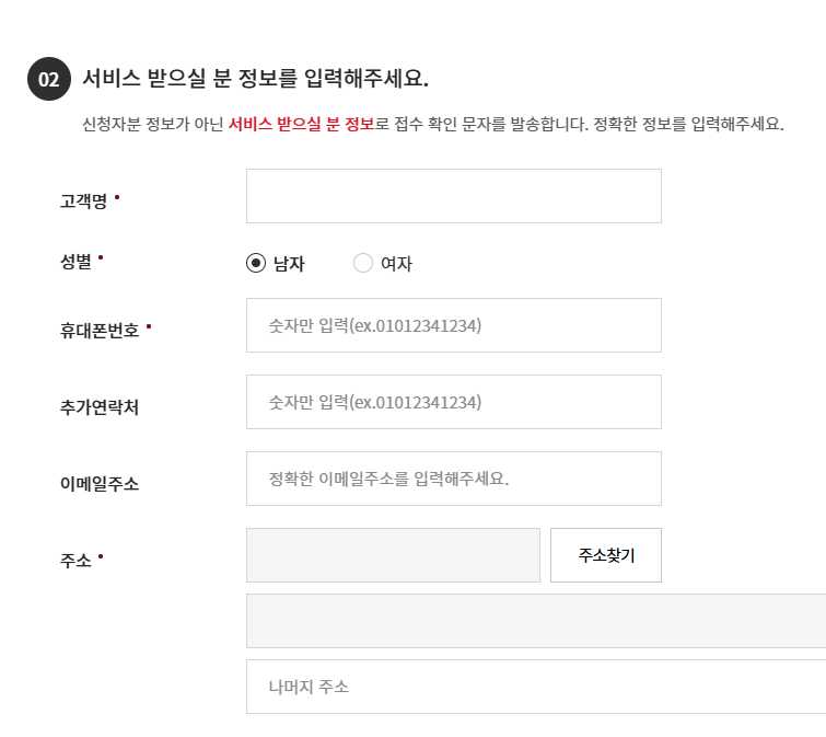 그리고 본인의 개인정보와 주소 등을 입력해준 뒤에, 원하는 날짜와 시간을 정해서 예약을 해주시면 됩니다.