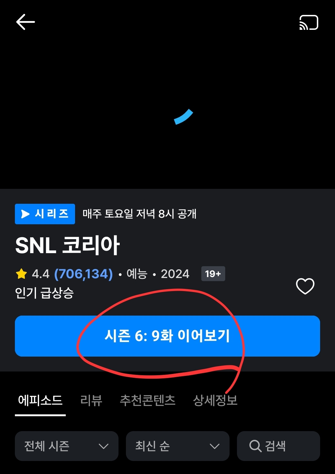 3) 그리고 성인인증이 필요한 19세 관람가 컨텐츠를 아무거나 클릭해서 들어갑니다.