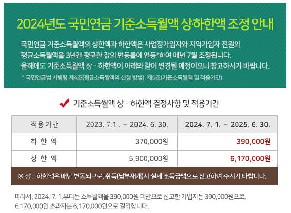 기준소득월액에는 상한액과 하한액이 있는데요. 최근에 상한액은 6,170,000원으로 하한액은 390,000원으로 적용이 되고 있습니다.